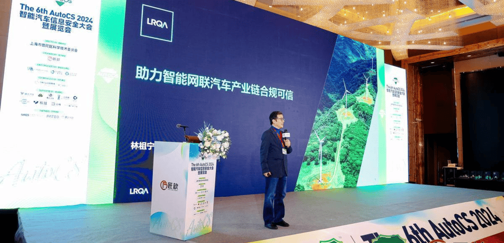 During the conference, Mr. Zuning Lin, Lead Auditor at LRQA, delivered an insightful speech titled "How can assurance services help achieve trustworthiness and sustainability for the auto sector?" The presentation emphasised the importance of LRQA’s compliance, assurance, and advisory services, particularly in cybersecurity and AI, crucial for the evolving needs of the automotive industry.