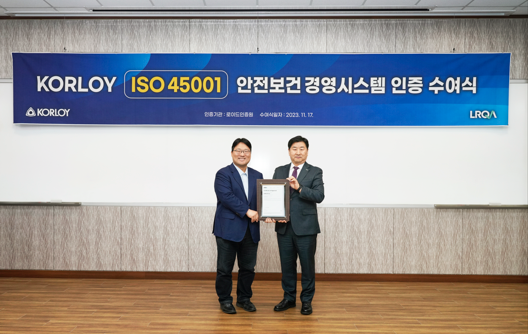 2023년 11월 17일 한국야금(KORLOY)의 ISO 45001 인증 취득을 축하하는 인증수여식이 진천 사옥에서 진행되었습니다.